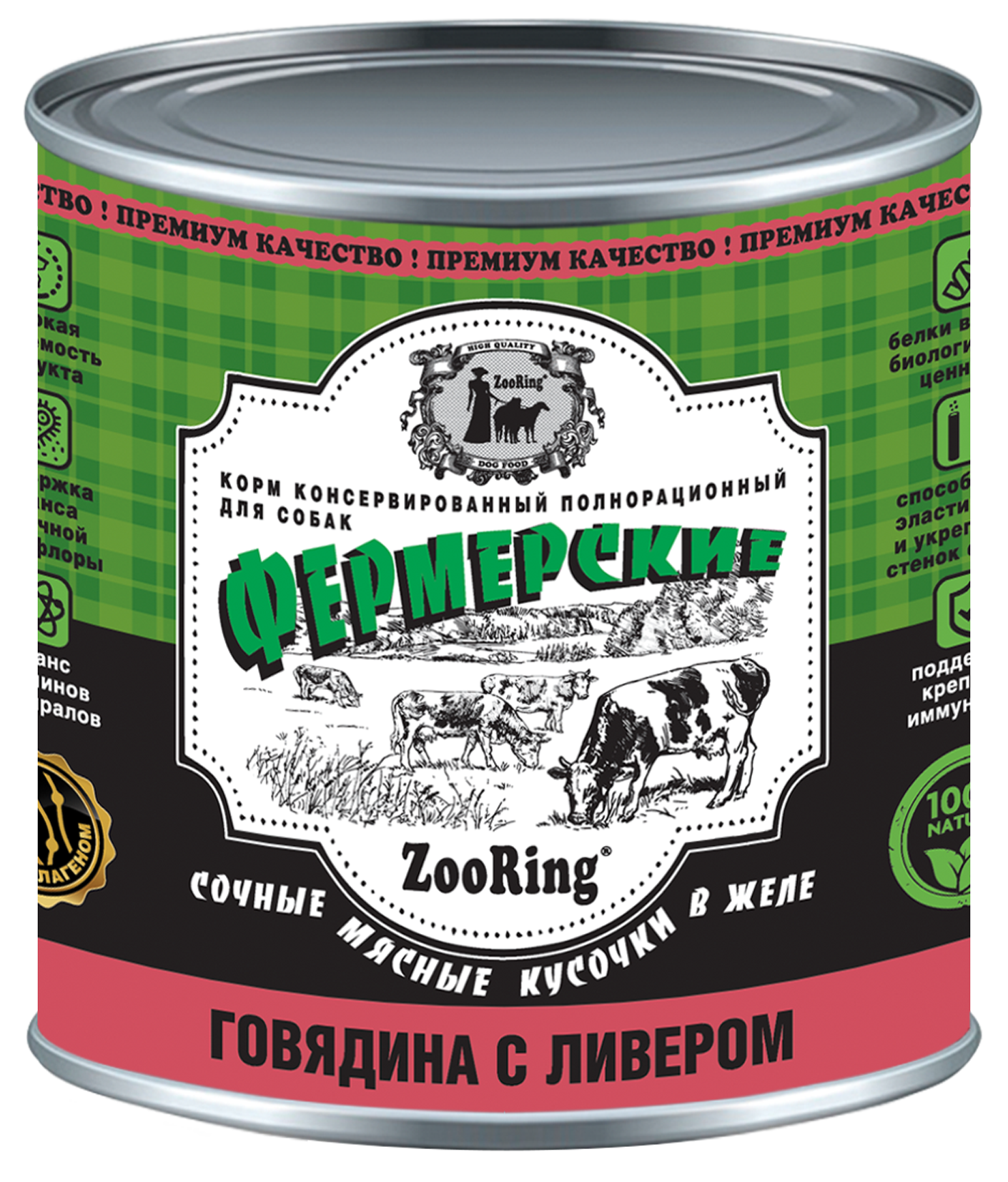 Консервы «Фермерские» премиум качества содержат только натуральные мясные ингредиенты — белки высокой биологической ценности.