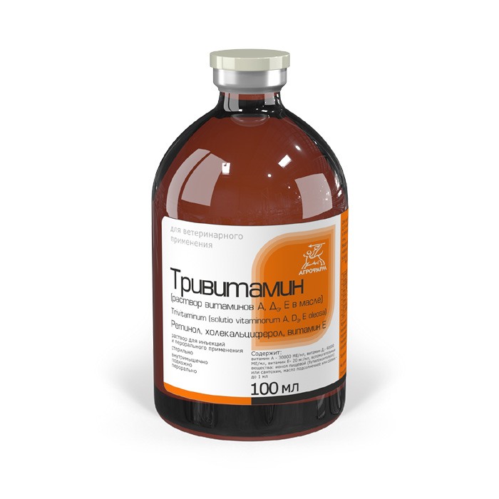 Отпускается Тривитамин (раствор витаминов А, Дз, Е в масле) без рецепта ветеринарного врача.
